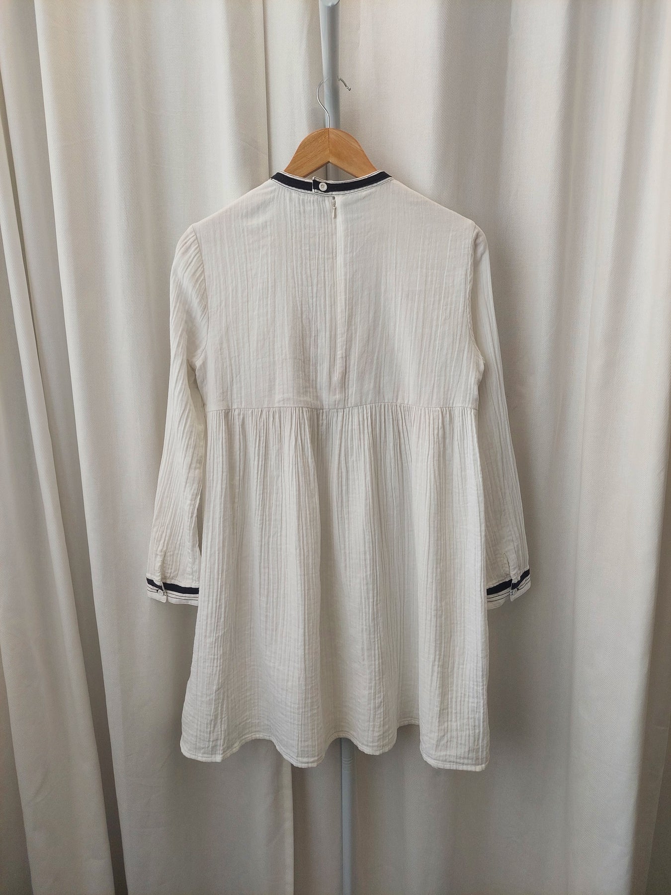 Binny Cockle Tassel Trim Dress in White Cheesecloth Cotton, Size 10