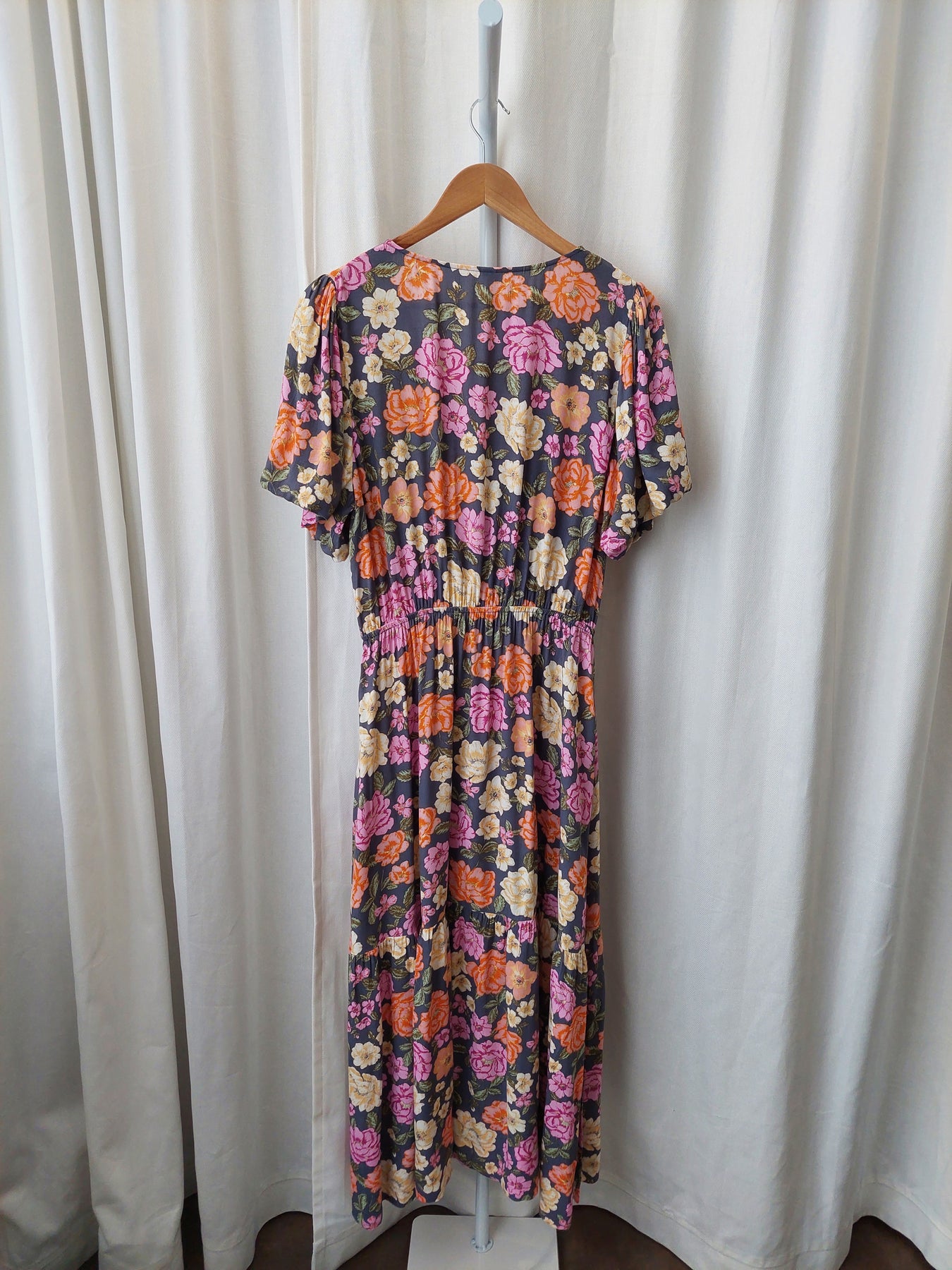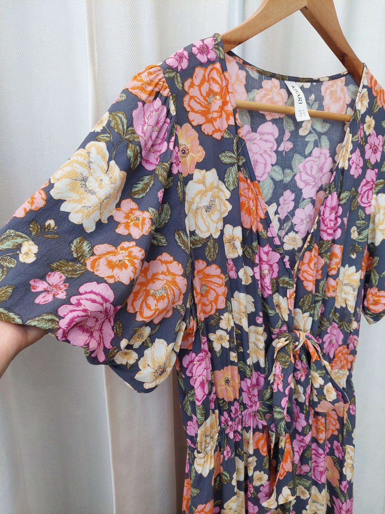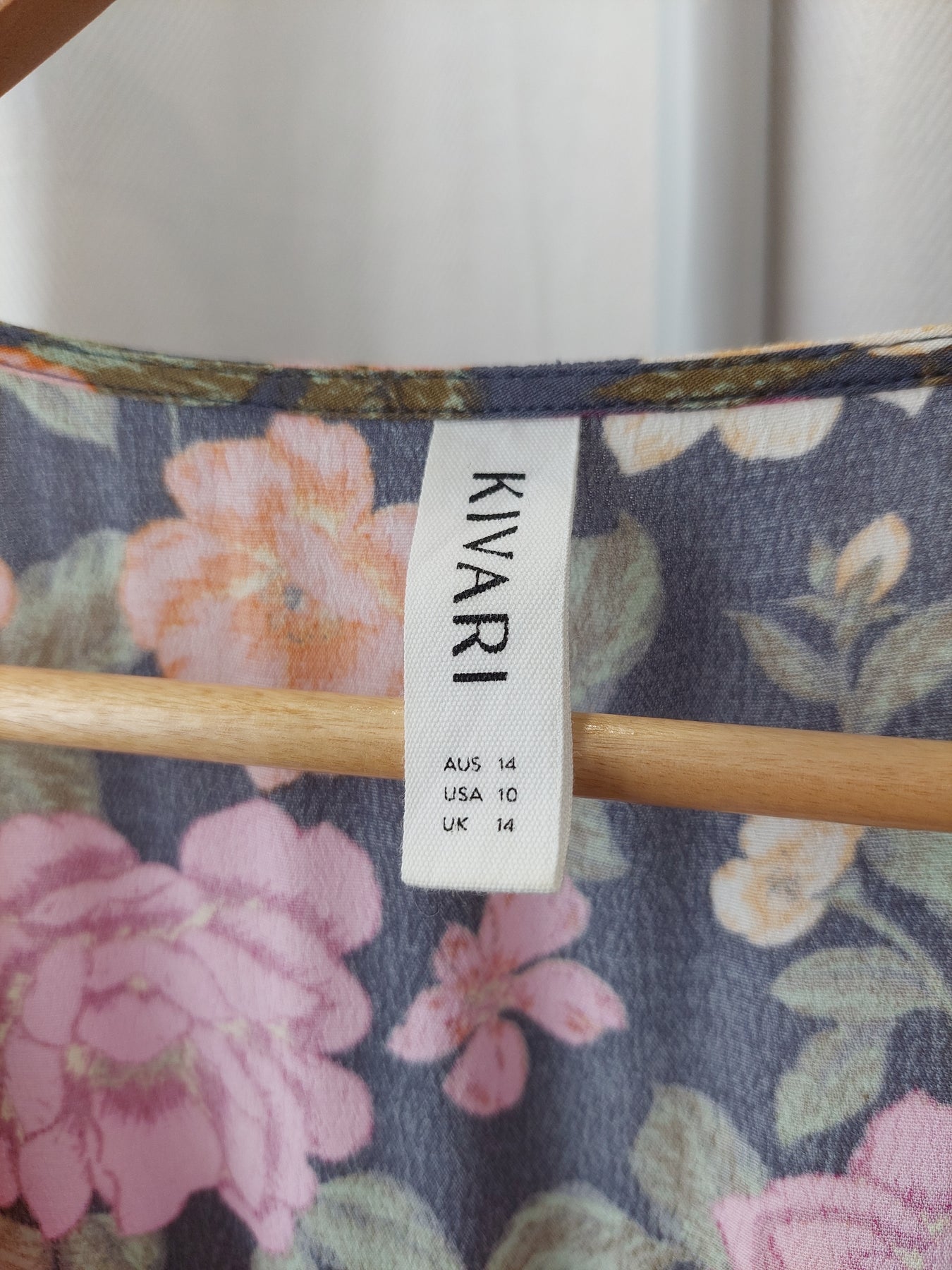 KIVARI Hope Tie Front Floral Midi Dress, Size AU 14 / US 10